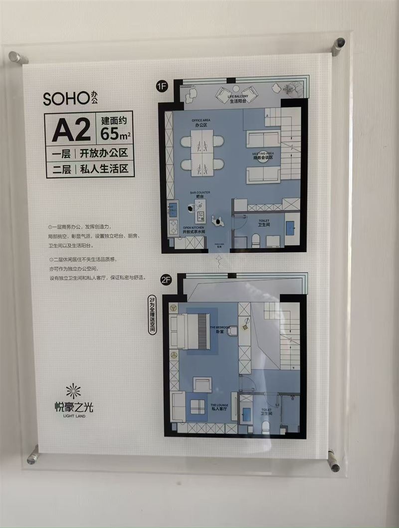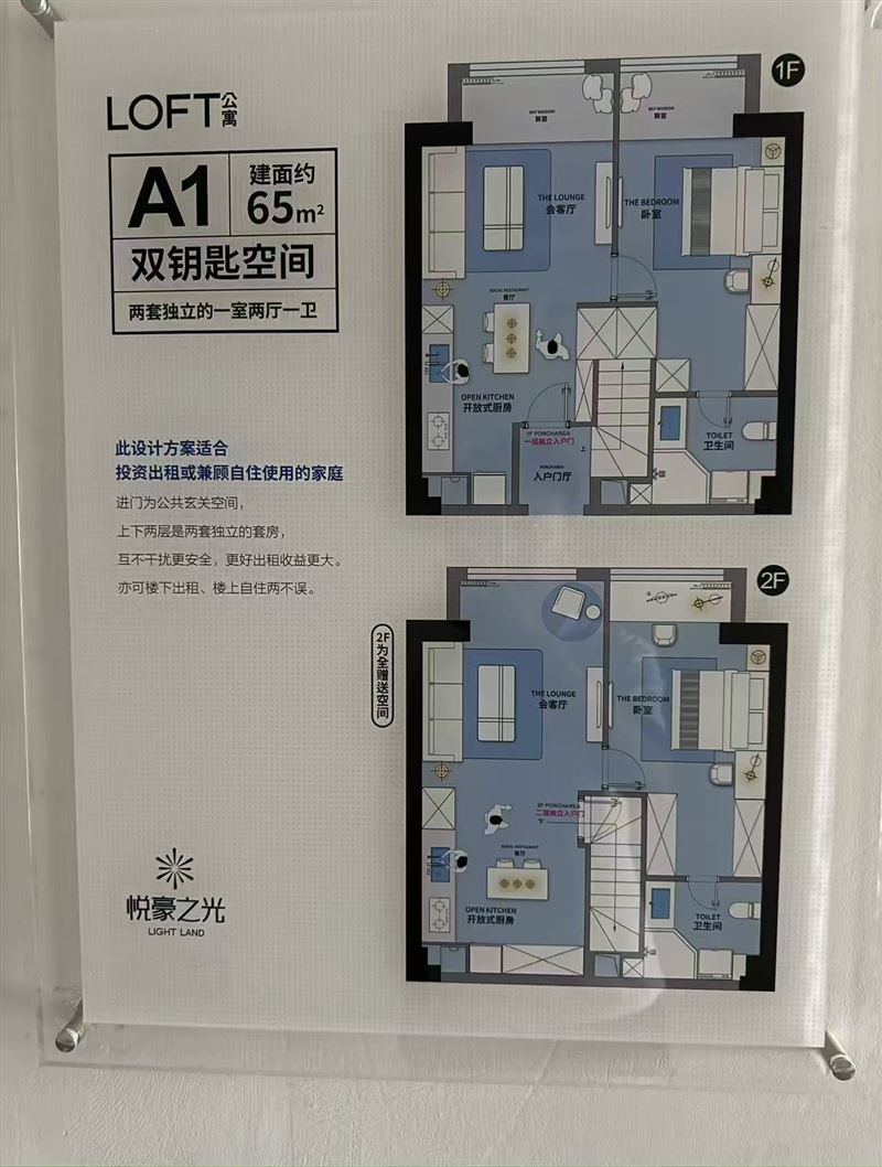 悦豪之光 LOFT 公寓,面积65平,层高5.08米,单价6500-6800元/m²。