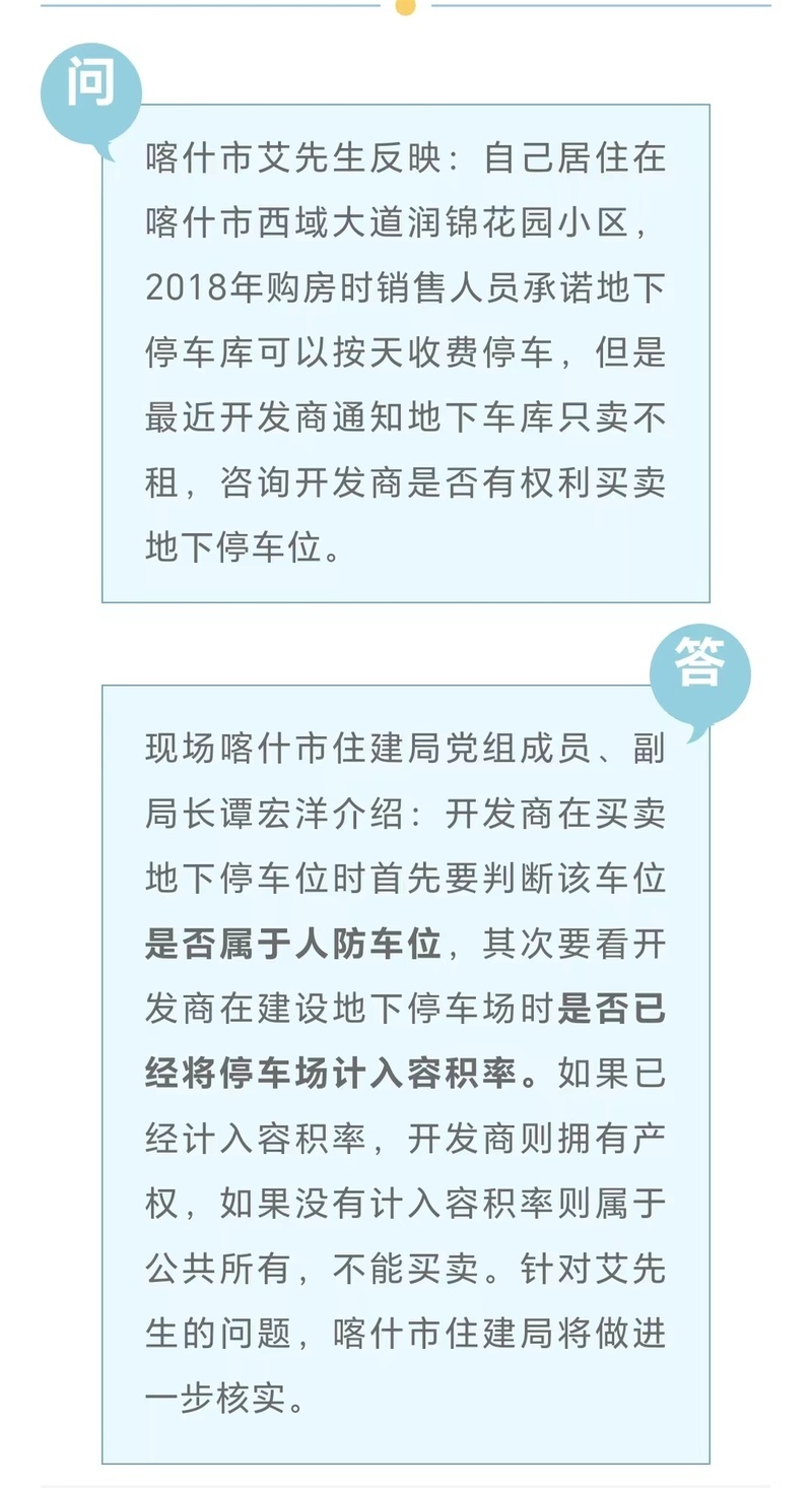 开发商是否有权利买卖地下停车位,喀什市住建局最新回应!